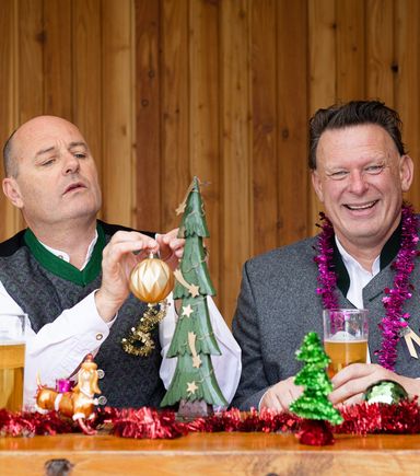 Die beiden Schauspieler Bernhard Ulrich- er spielt den Brauereibesitzer Hubert Kirchleitner in „Dahoam is Dahoam“- und Fritz Scheuermann- bekannt aus derselben Serie- gestalten gemeinsam eine weihnachtliche Lesung.